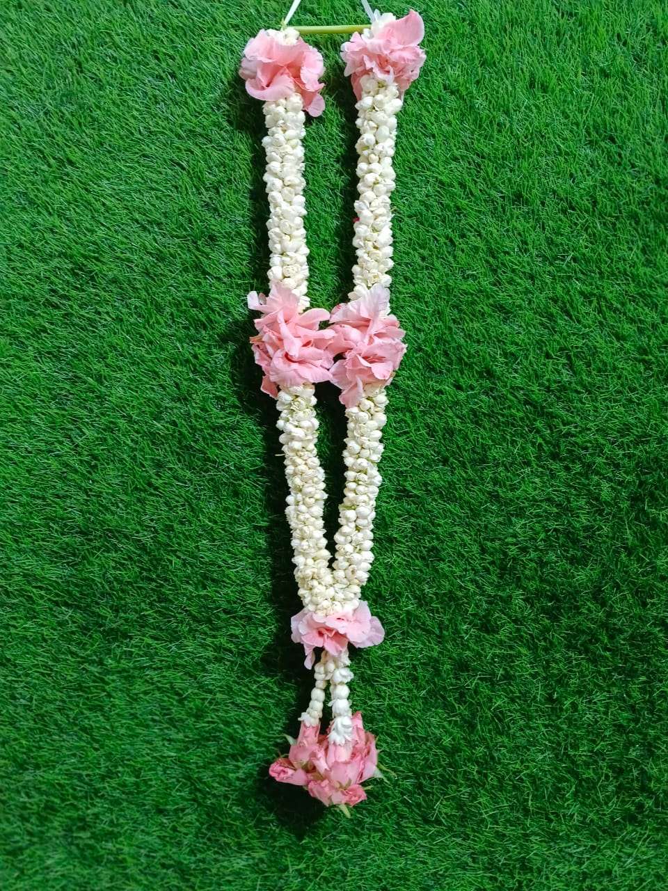 Premium fresh jasmine garland with pink rose highlights, ideal for Umrah returns, welcome events, and spiritual occasions.