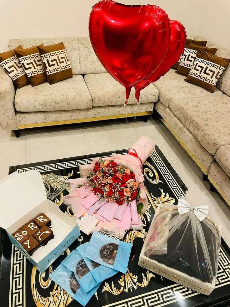 Say sorry in the most heartfelt way with our beautifully curated Sorry Surprise Gift. This romantic setup includes a stunning red heart foil balloon, a fresh flower bouquet, a chocolate cake with a “SORRY” message, and premium chocolates, all arranged to melt hearts and heal moments.