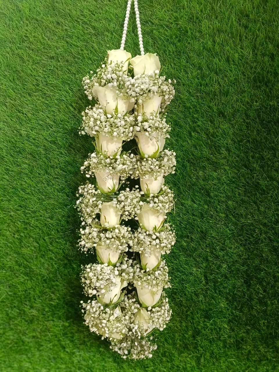 A luxurious mala crafted with fresh white roses and delicate baby’s breath flowers. Its long, graceful design creates a timeless and sophisticated bridal look. Perfect for weddings, nikkah, barat, and formal ceremonies. A symbol of purity, love, and understated elegance.