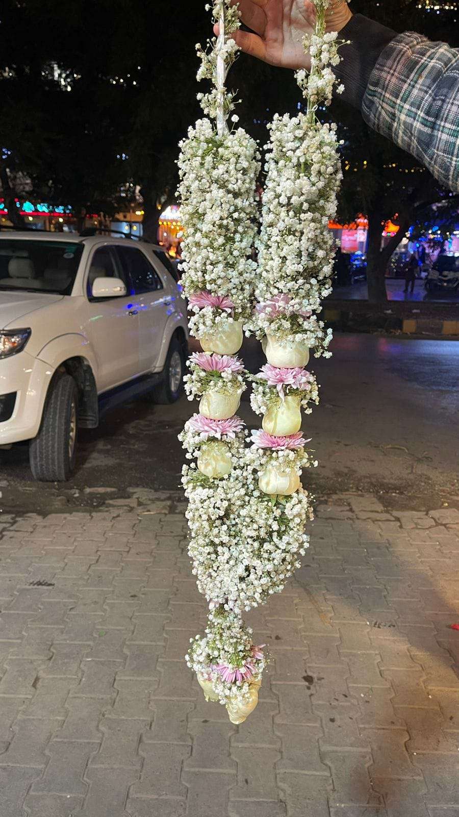 An elegant handcrafted floral haar made with fresh white baby’s breath, accented with soft pastel lotus-style blooms. Minimal, graceful, and perfect for nikah, engagement, and intimate wedding ceremonies. Designed for a clean, modern bridal aesthetic. Fresh flowers, premium finishing.