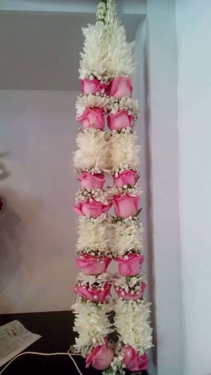 A beautiful handcrafted wedding haar featuring soft pink roses paired with fresh white flowers and delicate baby’s breath. Elegant, graceful, and perfect for nikah, barat, walima, and bridal entry ceremonies.