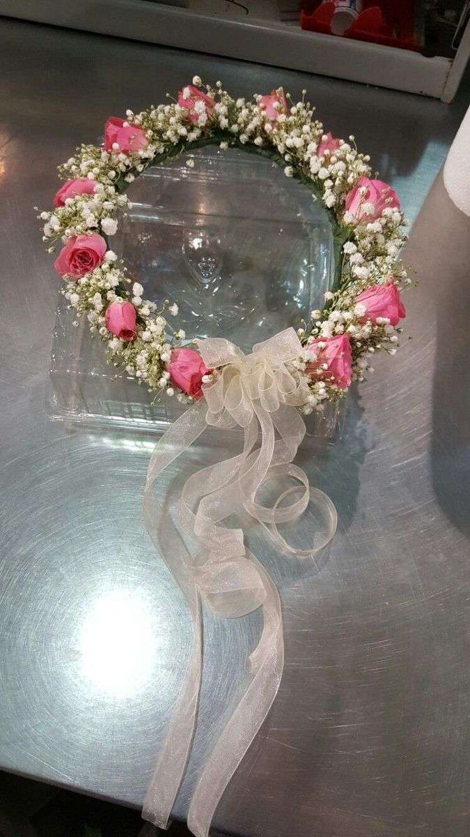 Fresh pink roses ke sath white baby breath ka beautiful combination jo hairstyle ko romantic aur classy look deta hai. Adjustable ribbon ke sath easy wear.