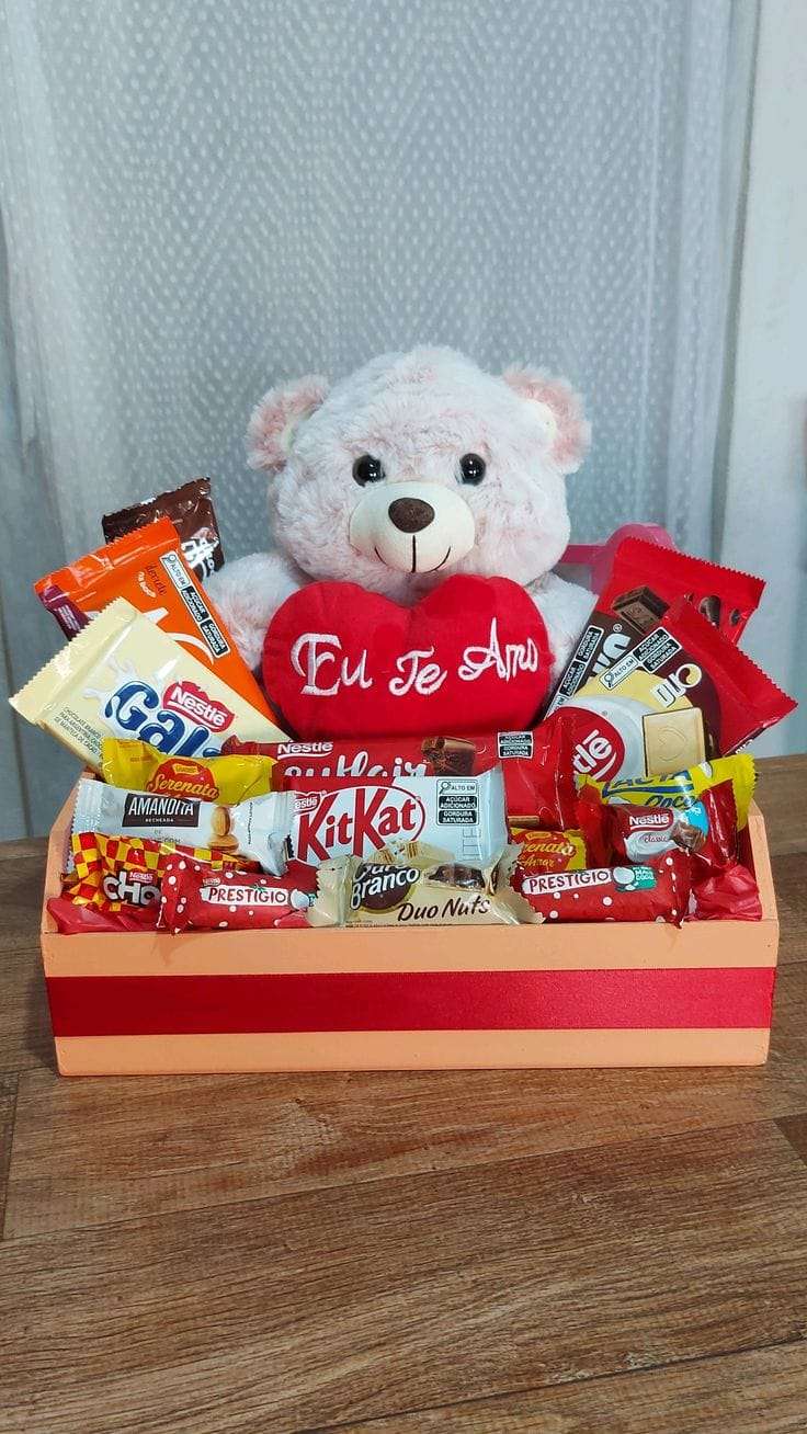 A delightful wooden tray packed with assorted chocolates and a lovable teddy bear holding a love message. Thoughtfully designed to bring smiles, warmth, and sweet moments to your loved one.