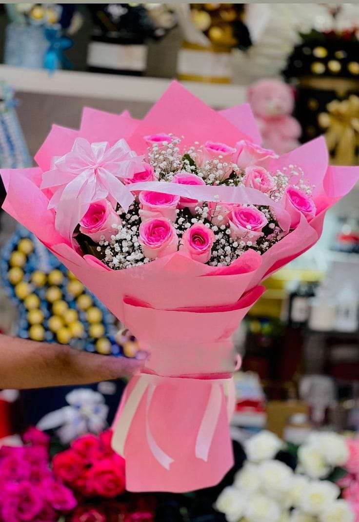 Make a bold romantic statement with our stunning vibrant pink rose bouquet. This eye-catching arrangement features premium hot pink roses beautifully complemented with delicate white baby’s breath, creating a striking color contrast. Wrapped in vibrant pink paper with an elegant lotus-style fan presentation and finished with a soft pink ribbon bow, this bouquet is perfect for expressing passion, admiration and deep affection. Ideal for Valentine’s Day, romantic gestures, anniversaries and special celebrations. Each bloom is hand-selected by our expert florists to ensure exceptional quality and freshness.